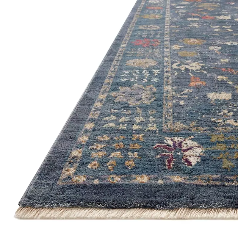 Bring the story of your home to life through one-of-a-kind pieces from the Grace Mitchell Collection by At Home. Our charming jewel blue floral 5x8ft. area rug is ideal for traditional and modern settings, and it helps with noise levels and keeps bare floors nice and comfy. The polyester rug pile offers a nice feeling to the touch and will be a treat for your toes. This wonderful floral bordered accent rug will be comfortable in a contemporary loft or just at home in a modern farmhouse. Also available in 8x10ft. size and a 2x8ft. runner.