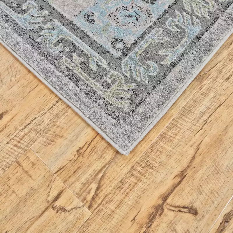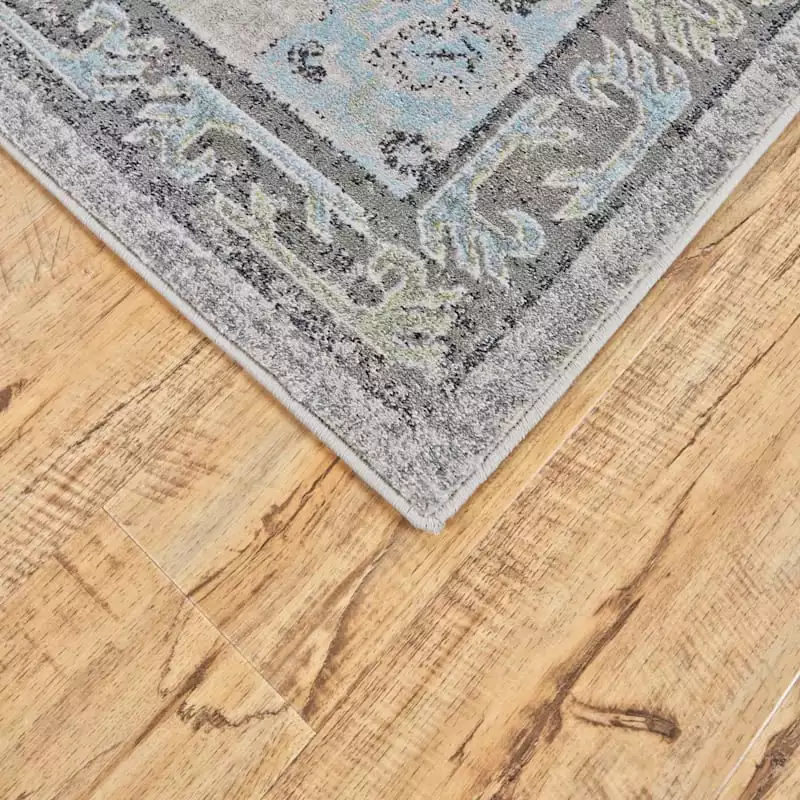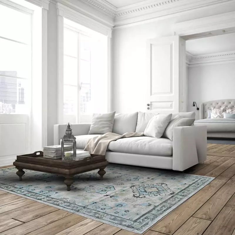 The Alessandria Tribal Rug Collection incorporates cool palettes and stunning tribal patterns to please the senses making use of a new polypropylene yarn that offers the resilience of traditional polypropylene but mimics the ultra-soft hand and rich luster of viscose. Using soft spa-like blues greens and a range of greys these power loomed bold tribal medallion designs bring a calming comfort to their surroundings. Fade resistant and ideal for areas that may experience high traffic and households with pets. Available in 5x8ft. and 8x11ft. sizes. Made in Turkey.