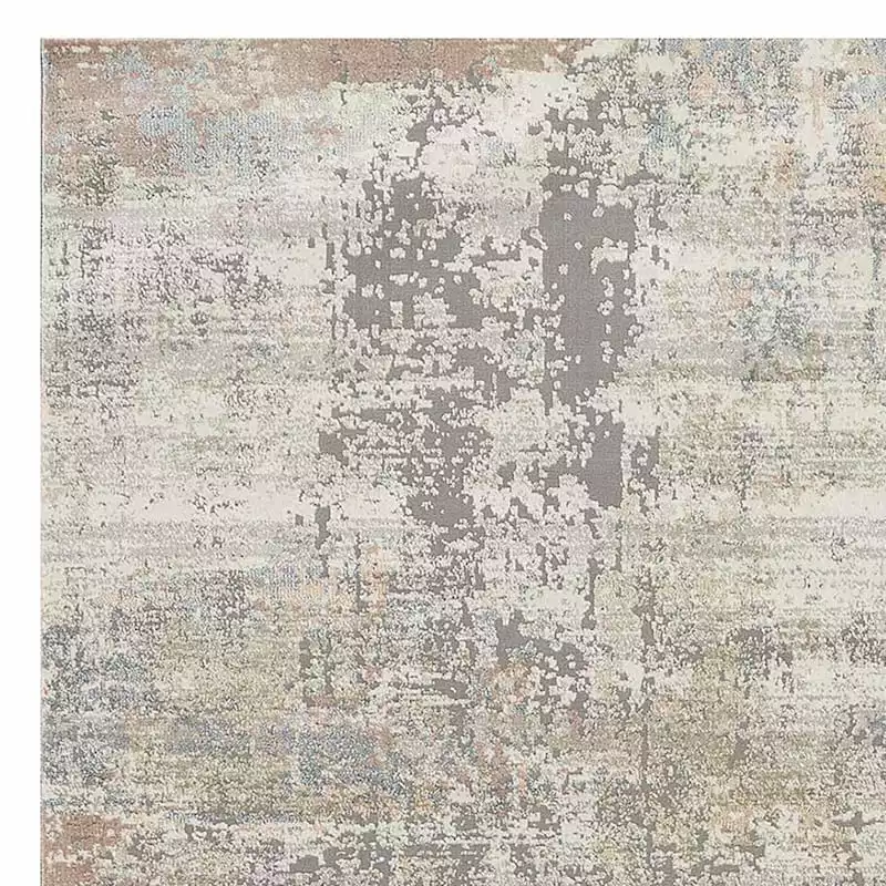 Set a modern foundation for your living room with this distressed area rug that features a splotchy abstract motif in compatible hues of ivory and grey. This synthetic area rug is perfect for rolling out in fashionable living rooms, workspaces and dining rooms, too. The neutral color palette and design that resembles well-worn concrete will be that contemporary nod you’ve been looking to add.