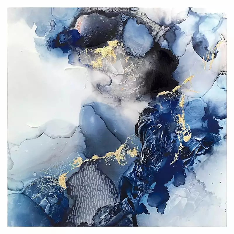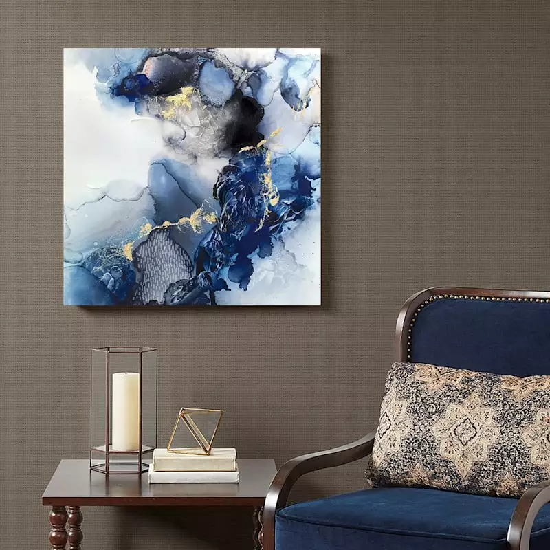 They say beauty is in the eye of the beholder. Art is too. Add a little character to any room in your home with our 24in. blue abstract canvas wall art. The possibilities are endless with this blue, white, grey, black and gold decor. A multicolor metallic abstract motif creates visual interest against a visually interesting backdrop. Hang this wall decor to make a bold statement and to add a touch of personality to your home decor.