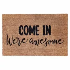 Our natural and black “Come In We’re awesome” coir doormat lets you express your style as you welcome friends and family. With a wonderful natural hue, this 18x30in. doormat coordinates with all your seasonal decor.