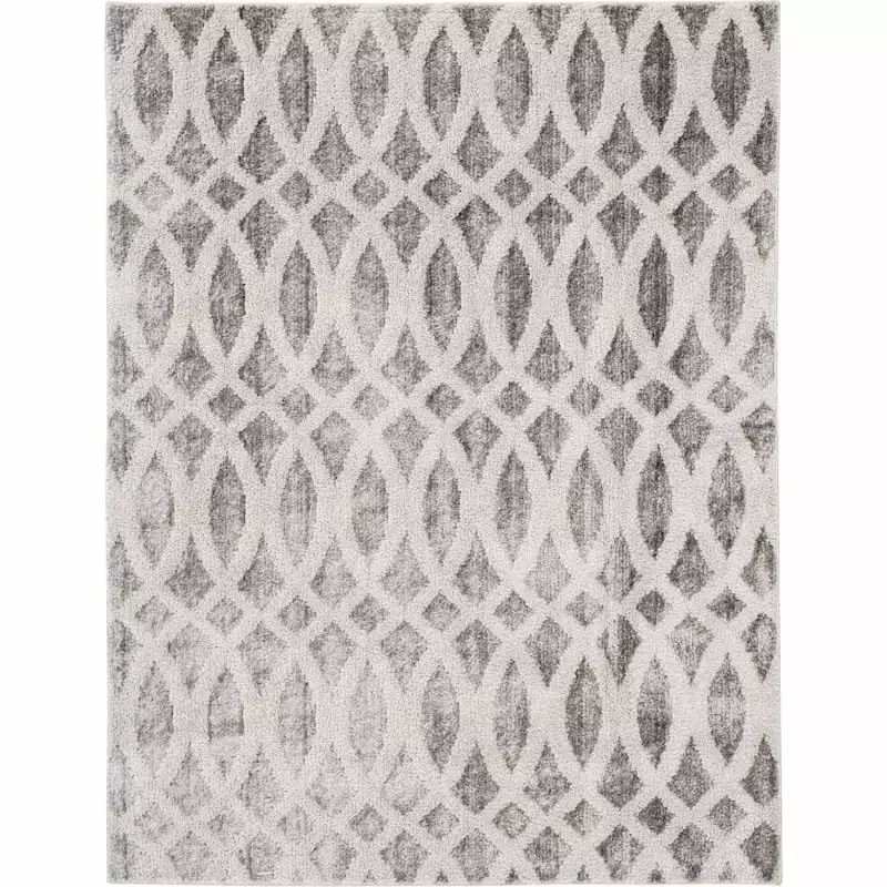 Our synthetic Sophelia area rug exquisitely blends vintage and contemporary sensibilities to create an interesting design that will be a favorite for years to come. This meticulously styled piece, with its narrow interlocking grey and ivory tufted chain pattern, will provide a durable and natural foundation to your whole room’s decor. The non-slip back keeps the rug in place. Available in 3x5ft., 5x7ft. and 8x10ft. sizes and a 2x7ft. runner.