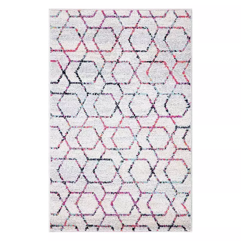 Add a little geometry to your life with our Savannah multicolor accent rug. Known for its silky soft and non-shedding pile, this rug is a treat for your eyes and toes as well. Durable polyester construction ensures this rug is built to withstand regular foot traffic. The unique and colorful geometric link pattern on white will make a beautiful statement in any home. Available in 3x5ft., 5x7ft. and 7x9ft. sizes, and a 2x6ft. runner.