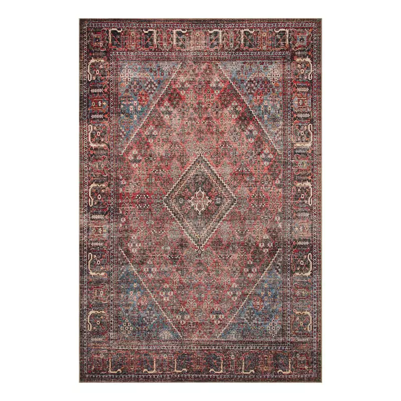 Found & Fable is a new collection that lets you explore what’s right around the corner. Choose your own adventure every day. Savor it all and say yes to what comes next—exclusively At Home. With its classic jeweled hues and distressed medallion and border printed design, this rug has a vintage feel. Crafted entirely using a premium synthetic, the Vilani red and blue area rug is easy to clean with anti-shedding capabilities, making it both pet and family friendly. Available in 5x7ft. and 8x10ft. sizes and a 2x7ft. runner.
