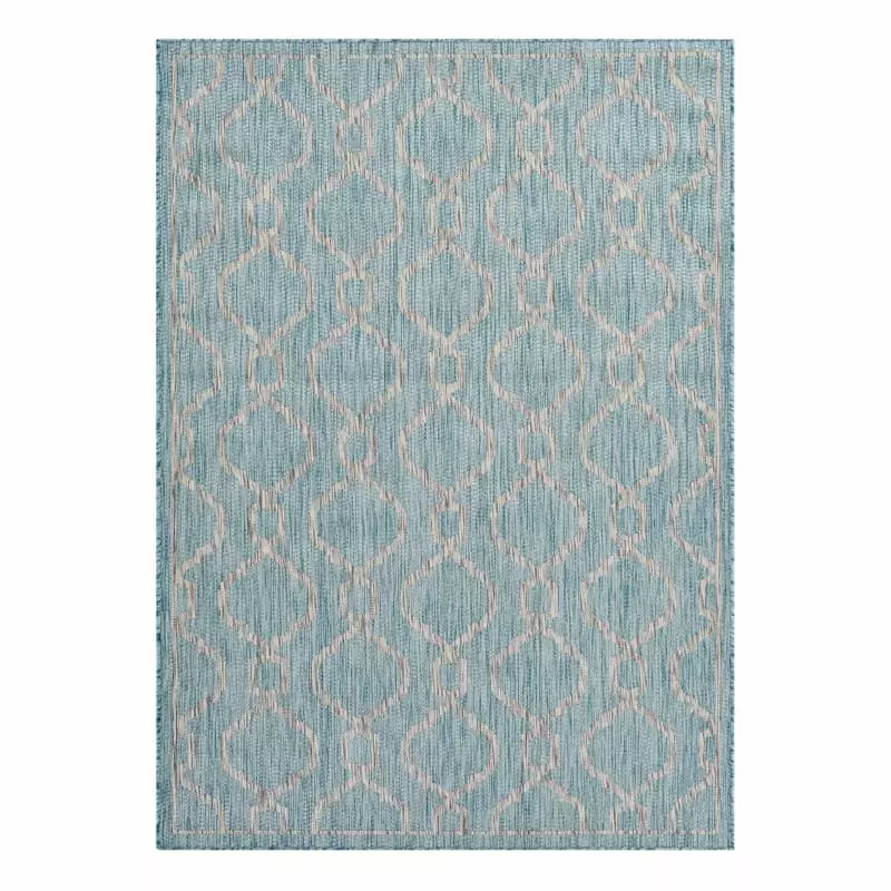 Warming up hardwoods, tile floors and concrete while setting the stage for the rest of your decor, area rugs are essential for nearly any indoor or outdoor space. Our sisal-look aqua geometric wave rug is constructed of synthetic fibers, making cleanup a cinch! It’s ideal for areas with high foot traffic — especially in homes with little ones and four-legged friends running around. Available in 2x4ft., 5x7ft. and 8x10ft. sizes.