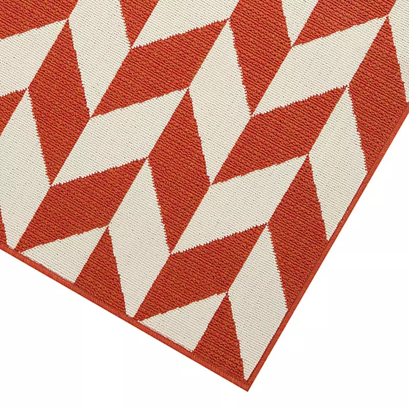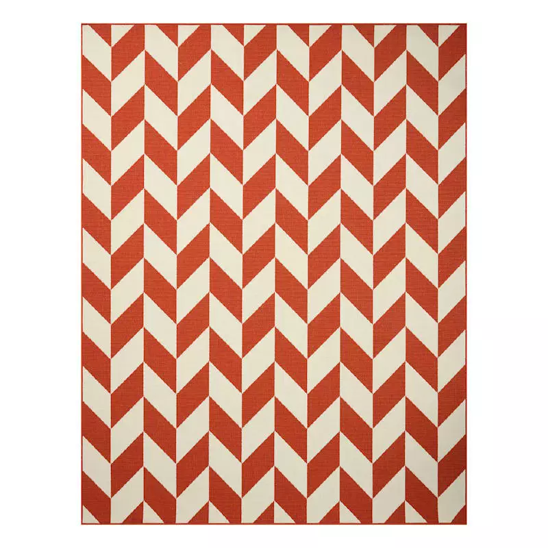 Need an instant room refresh? Switch things up a bit and roll out our Ember orange and tan herringbone accent rug to set a striking foundation in any room in your home. Showcasing an allover two-tone chevron that exudes a beachy vibe. The polyester fabrication offers comfort and is more resistant to wear. Available in 3x5ft., 5x8ft. and 8x10in. sizes.