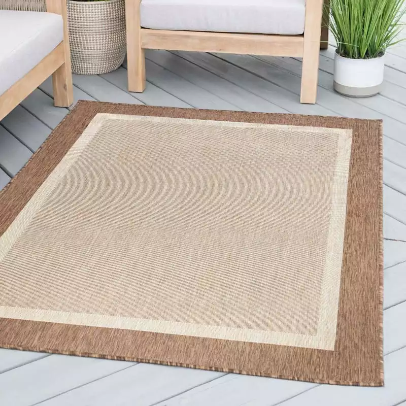 Transform your space with a modern rug that is both stylish and functional with our collection of high-quality rugs. Whether you’re looking for a bold statement piece or a subtle accent, our Sierra tan border outdoor area rug is the perfect way to elevate any space in your home.