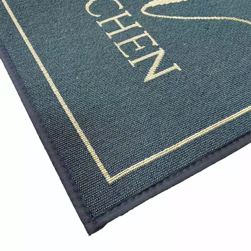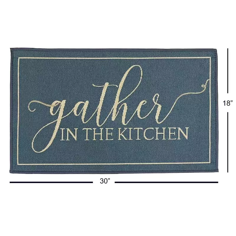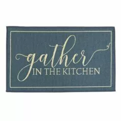 Our Hampton 18x30in. “gather in the kitchen” kitchen mat lets you express your style as you welcome friends and family in for special occasions. With a border message motif, this handy grey and tan polyester and cotton kitchen rug coordinates with all your decor and softens the step as well.