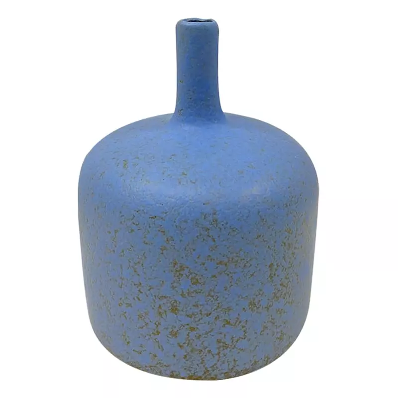 Modern farmhouse meets At Home prices in Honeybloom, our exclusive new brand that celebrates life lived together. This 6in. Emily cornflower blue bottle vase is a perfect size to place anywhere in your home. With its unique shape, matte color and with a bit of a rustic look near the bottom of the vase, you are sure to have a nice and funky design for your home. Add faux plants and flowers to elevate your home decor.