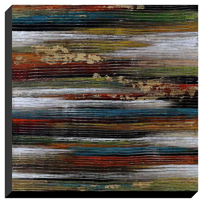They say beauty is in the eye of the beholder. Art is too. Add a little character to any room in your home with our 40in. horizontal stripes grooved enhanced canvas wall art. The possibilities are endless with this black, blue, green, red and gold multi wall decor. A multicolor abstract textured stripe motif creates visual interest against a visually interesting backdrop. Hang this wall decor to make a bold statement and to add a touch of personality to your home decor.