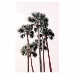 They say beauty is in the eye of the beholder. Art is too. Add a little character to any room in your home with our 60x36in. Pink Tropics glass coat canvas wall art. The possibilities are endless with this pink, green and brown wall decor. A scenic palm tree grove motif creates visual interest against a visually interesting backdrop. Hang this wall decor to make a bold statement and to add a touch of personality to your home decor.