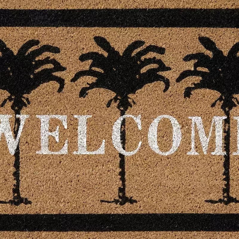 A collection that lets everyone relax in style. Polished finishes and classic hues pair with fun finds. Providence is where elegant settings still feel comfortable and warm—exclusively At Home. Our coir “Welcome” palms doormat lets you express your style as you welcome friends and family into your home all year long. With a wonderful natural motif, this 18x30in. doormat coordinates with all your seasonal decor.