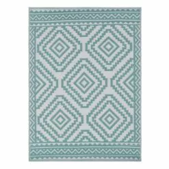Turquoise Diamond Design Plastic Outdoor Area Rug, 5×7