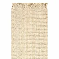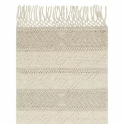 (B779) Reese Ivory Striped Fringe Runner, 2×7