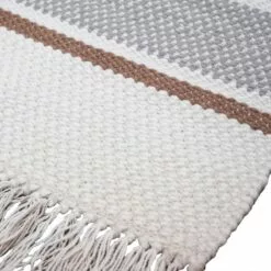 (B819) Panyer Ivory Striped Flatweave Runner, 2×7