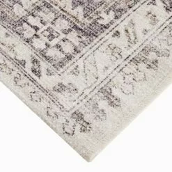 (B829) Grey & White Floral Washable Area Rug, 5×7