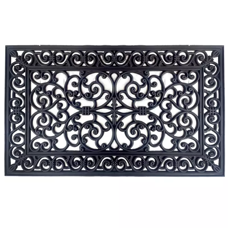 Our scrollwork black rubber doormat lets you express your style as you welcome friends and family. With a wonderful black palette, this 22x36in. doormat coordinates with all your seasonal decor.