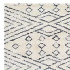 (C173) Beni Cream Diamond Design Shag Area Rug, 8×10