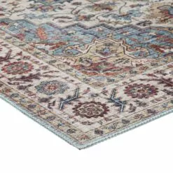(D448) Found & Fable Chenille Printed Vintage Look Blue Medallion Area Rug, 5×7