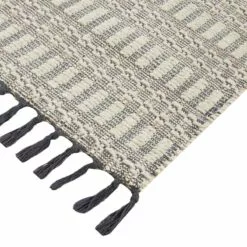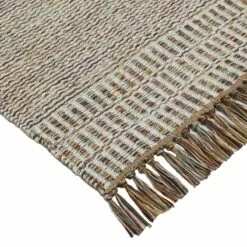 (B718) Honeybloom Joelle Neutral Woven Fringe Area Rug, 5×7