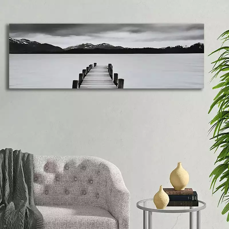 They say beauty is in the eye of the beholder. Art is too. Add a little character to any room in your home with our 36x12in. Jetty canvas wall art. The possibilities are endless with this grey, black, and white wall decor. A peaceful neutral pier motif creates visual interest against a visually interesting backdrop. Hang this wall decor to make a bold statement and to add a touch of personality to your home decor.