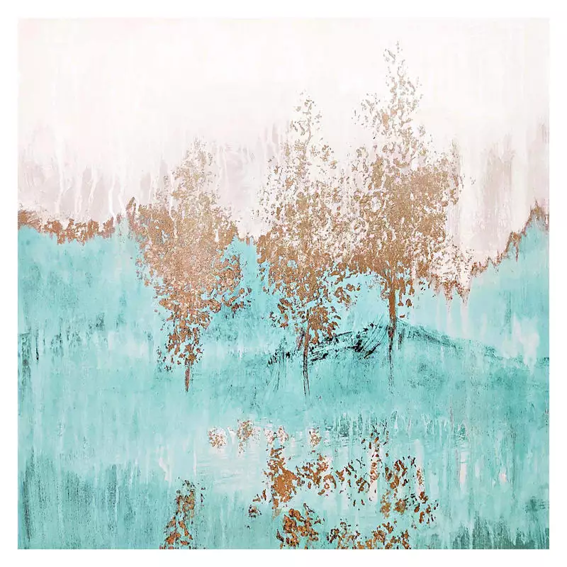 They say beauty is in the eye of the beholder. Art is too. Add a little character to any room in your home with our 40in. Through the Gold Trees I filed canvas wall art. The possibilities are endless with this teal, blue, white and gold multi wall decor. A multicolor abstract tree landscape motif creates visual interest against a visually interesting backdrop. Hang this wall decor to make a bold statement and to add a touch of personality to your home decor.
