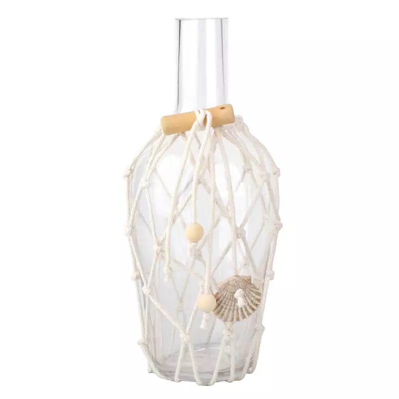 A jack-of-all-trades, including graphic designer, carpenter, contractor, author and beloved reality TV host, Ty Pennington has created a new and exclusive collection for At Home. Round out your indoor or outdoor decor’s visual appeal with this clear vase, crafted of glass and showcasing a string netting motif. This slender piece’s architectural details add a pop of pattern to your look, while the design’s textured finish blends effortlessly into any color palette. Set this piece inside or out to enhance your space with wonderful coordinating coastal decor.
