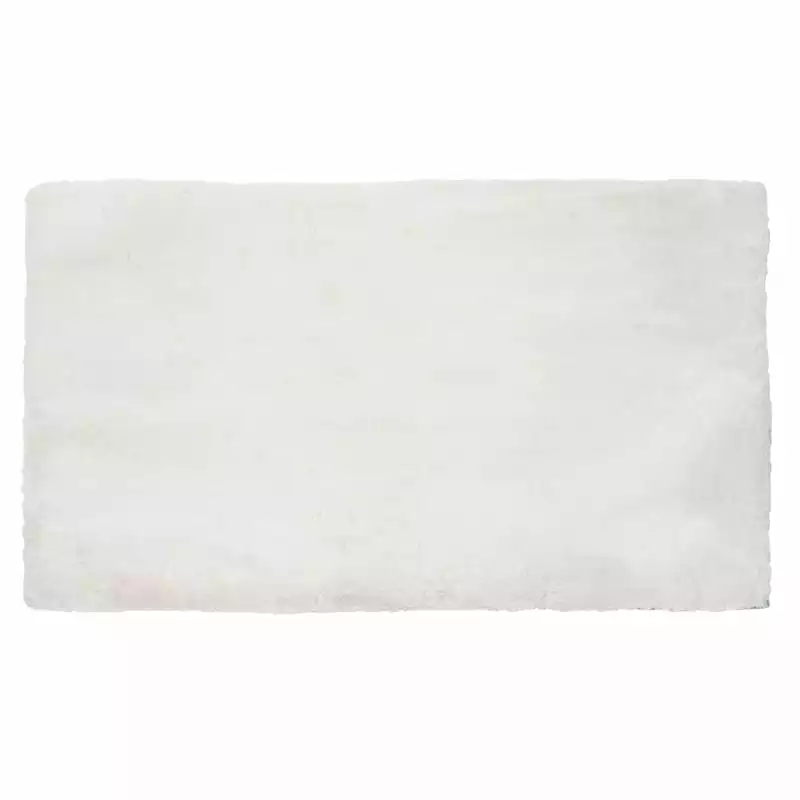Warm up your living room or bedroom with a oh-so soft modern Flokati rug. Featuring the character and appearance of a Flokati rug, this 27x45in. white faux fur rug will stun wherever it’s placed. Made of durable polyester with a low pile shag texture. Ideal for transitional and contemporary interiors.